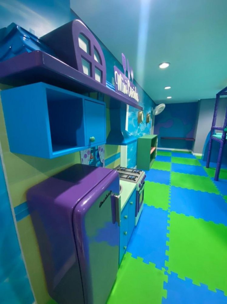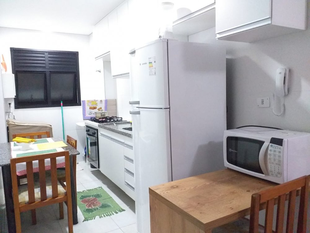 - Cozinha com armários planejados, fogão e geladeira