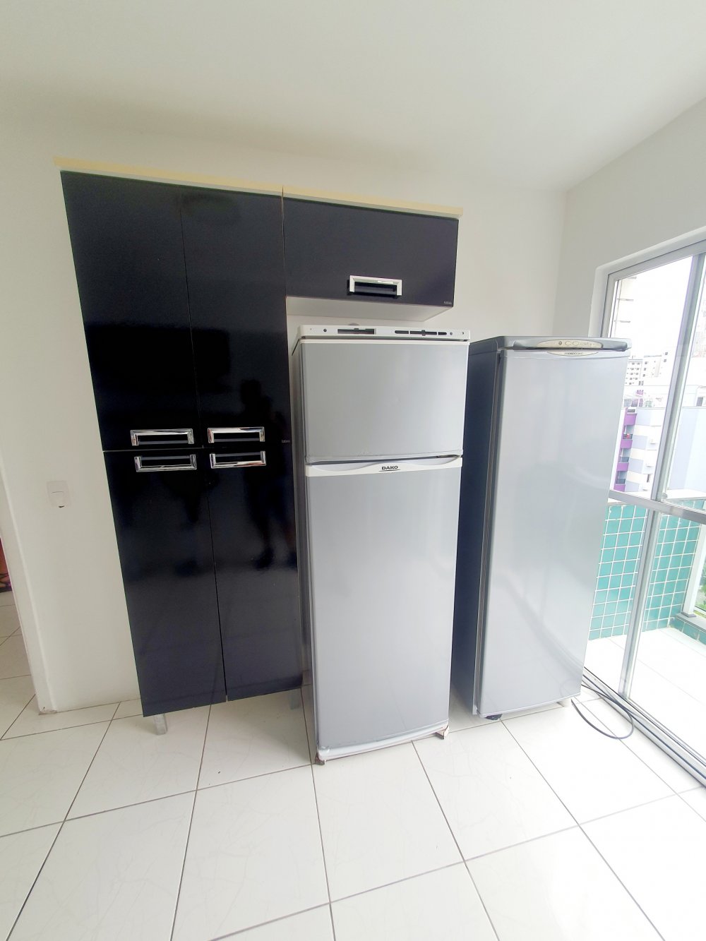 com geladeira, fogão e microondas, espaço de lazer com churrasqueira e solarium