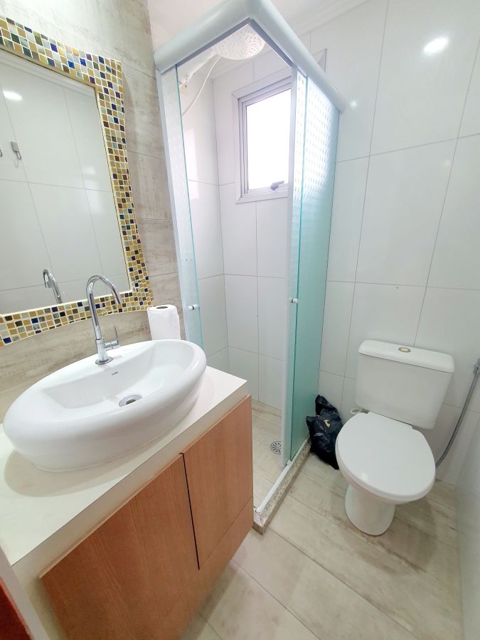 - 1 banheiro já com box de vidro, gabinete e chuveiro