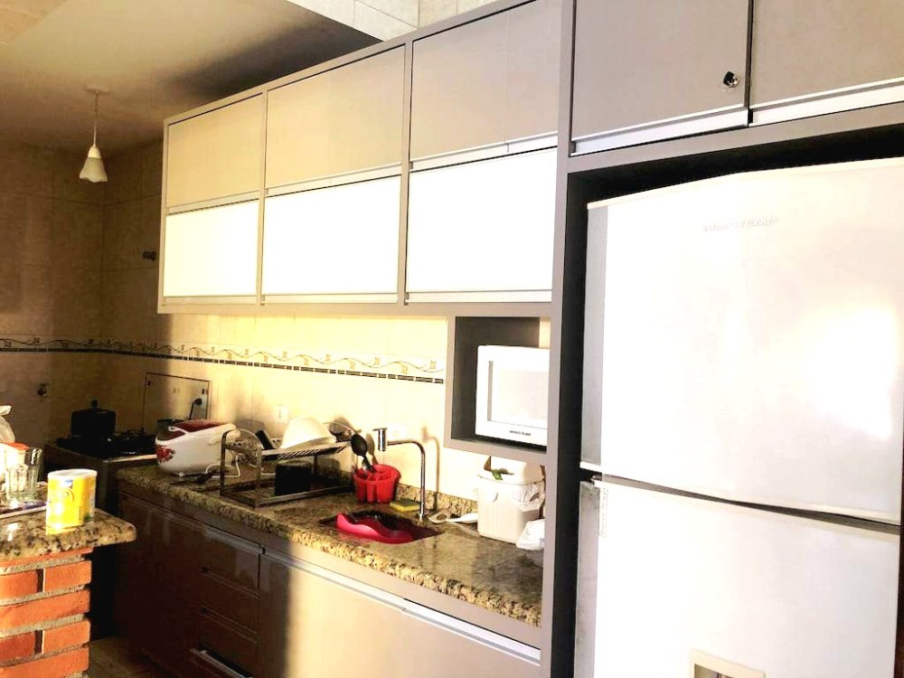 - Cozinha com armários planejados, fogão e geladeira