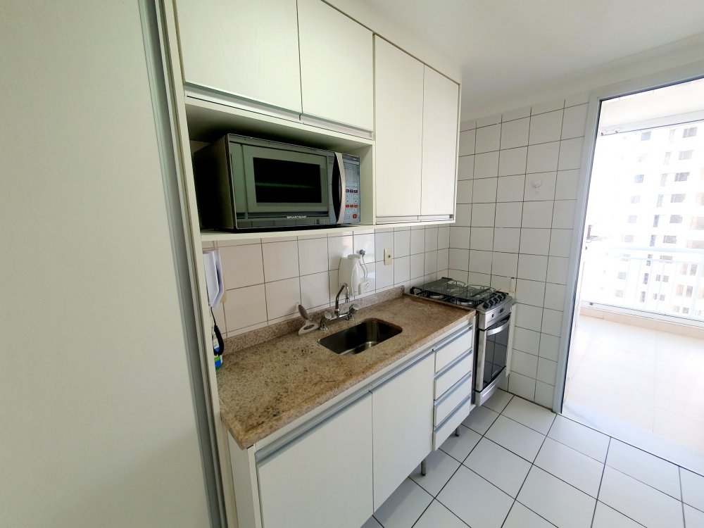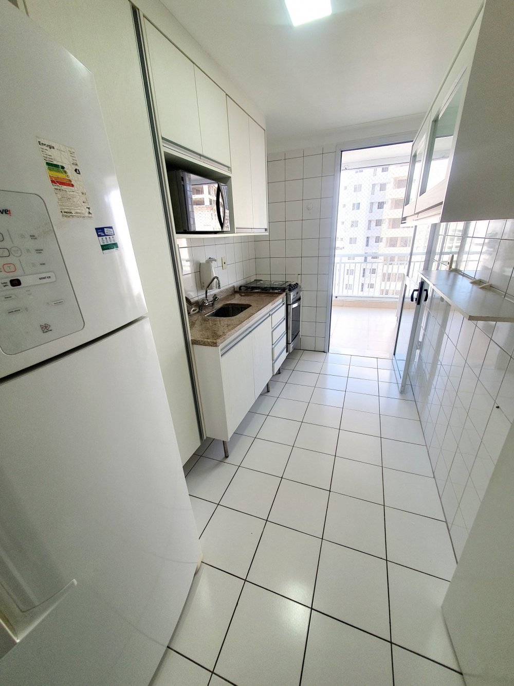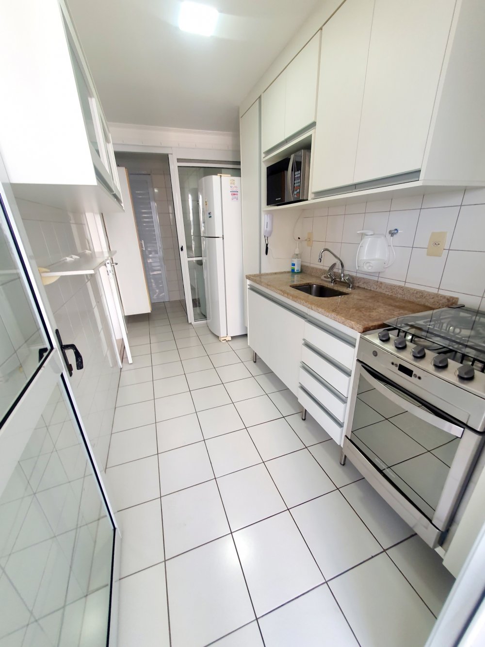 - Cozinha ampla com armários planejados, fogão, geladeira e microondas