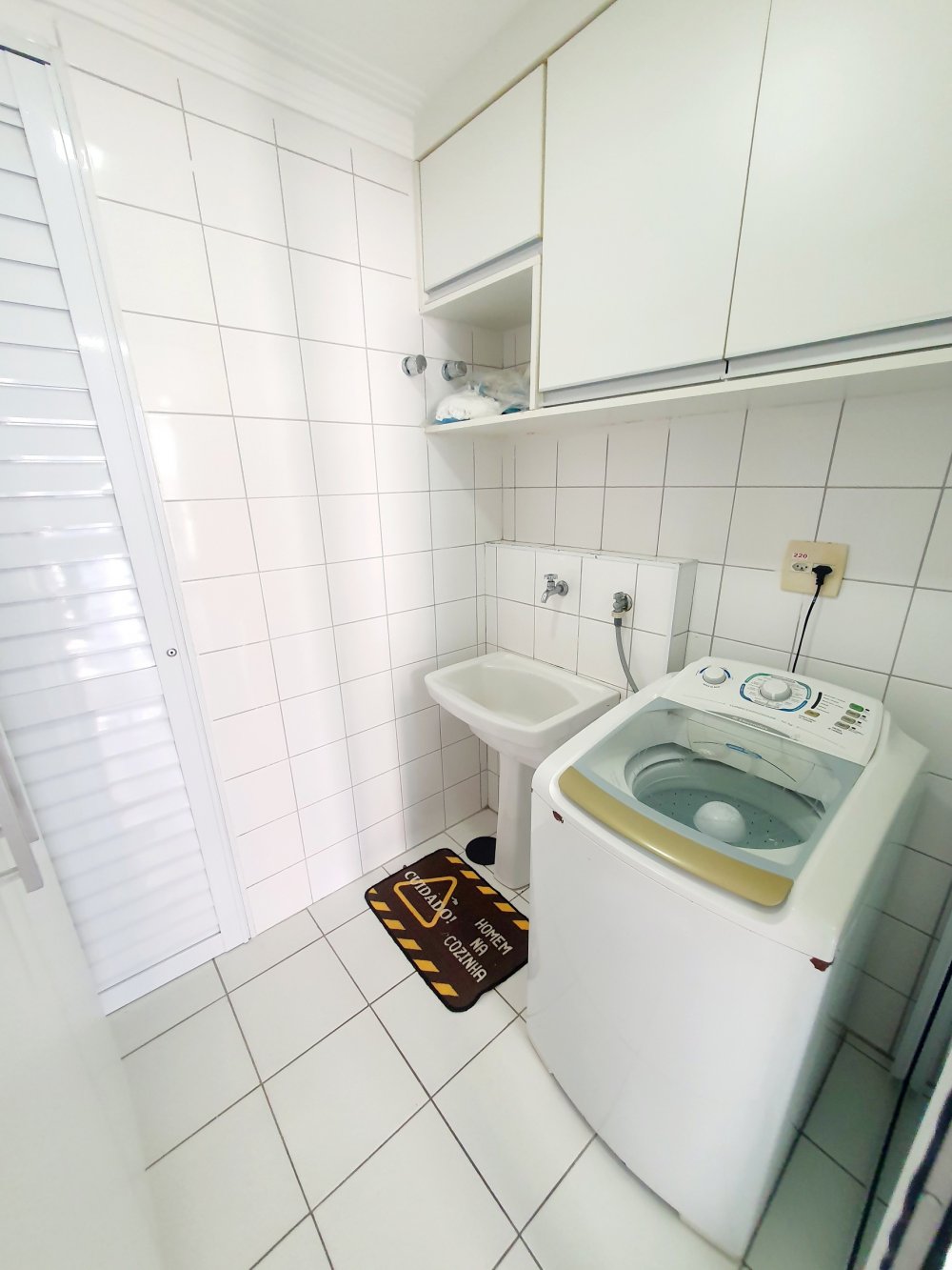 - área de serviço separada da cozinha com porta e máquina de lavar